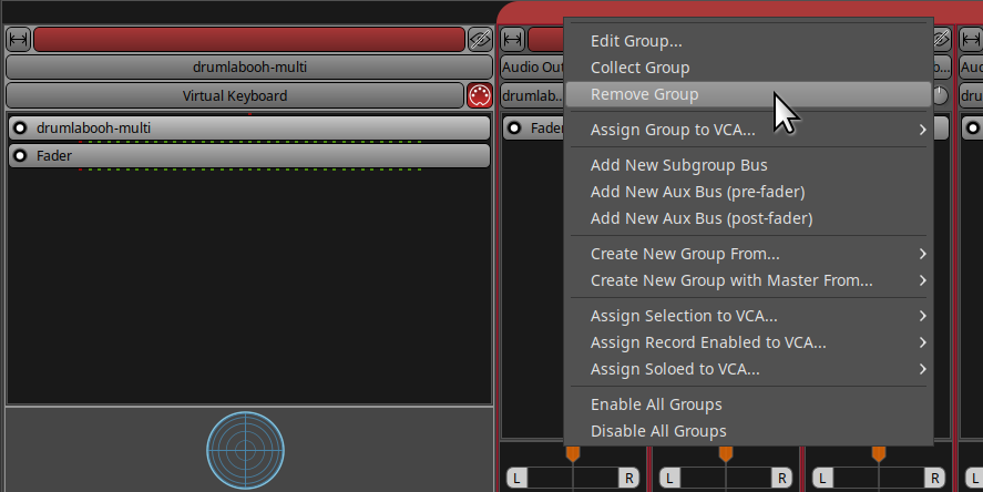 4. Теперь все новые дорожки-каналы в группе. Объединены. Чтобы нормально работать с ними по отдельности, сделайте правый клик на заголовке группы и выберите пункт меню Remove group: